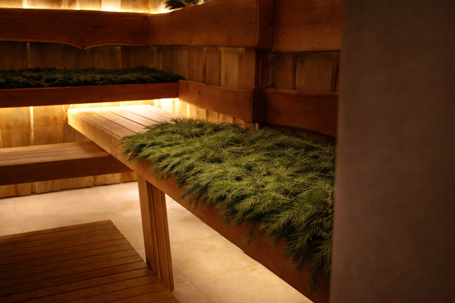 В процессе парения используются цитрусовые в разных формах: свежие, ледяные, экстракты и масла. Это придает программе особую яркость и настроение. Вместе с тонкими ассоциативными ароматами хвои пространство навевает о празднике.